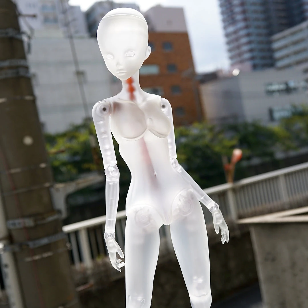 We have only a small batch of clear vinyl and frames as we have to make a minimum lot even for R&D purposes – but we don’t need so many right now, so they will be sold off in the Chaos section soon. You can couple the clear vinyl with any standard skin tone frame for durability if you are worried about the weaker clear ABS frame.